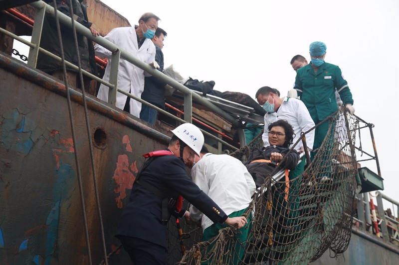 汕頭海事局立即啟動(dòng)應(yīng)急預(yù)案,一方面安撫船員保持通信暢通,指揮該船從南澳海域駛?cè)肷穷^港內(nèi)錨地;另一方面聯(lián)系120急救中心派出3部救護(hù)車,安排醫(yī)護(hù)人員趕赴碼頭救助;同時(shí),還迅速聯(lián)系口岸聯(lián)檢部門開通“綠色通道”,為外籍傷員集中簡(jiǎn)化辦理入境手續(xù),爭(zhēng)分奪秒力爭(zhēng)救援時(shí)間。