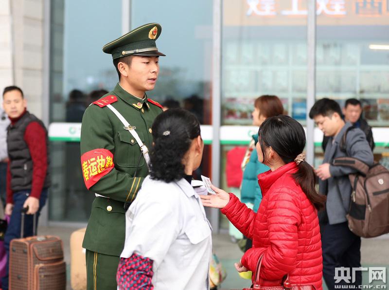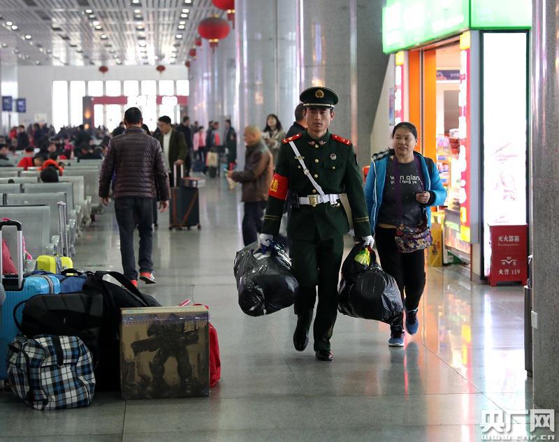 央廣網(wǎng)泉州2月14日消息(記者彭建軍 通訊員彭勇 莊標(biāo))春運(yùn)期間,隨著務(wù)工人員紛紛返鄉(xiāng),車站客流量出現(xiàn)高峰,在福建泉州動(dòng)車站,負(fù)責(zé)車站春運(yùn)執(zhí)勤的武警官兵認(rèn)真履職的同時(shí),為旅客提供熱情周到的便民服務(wù),用實(shí)際行動(dòng)溫暖旅客回家路。