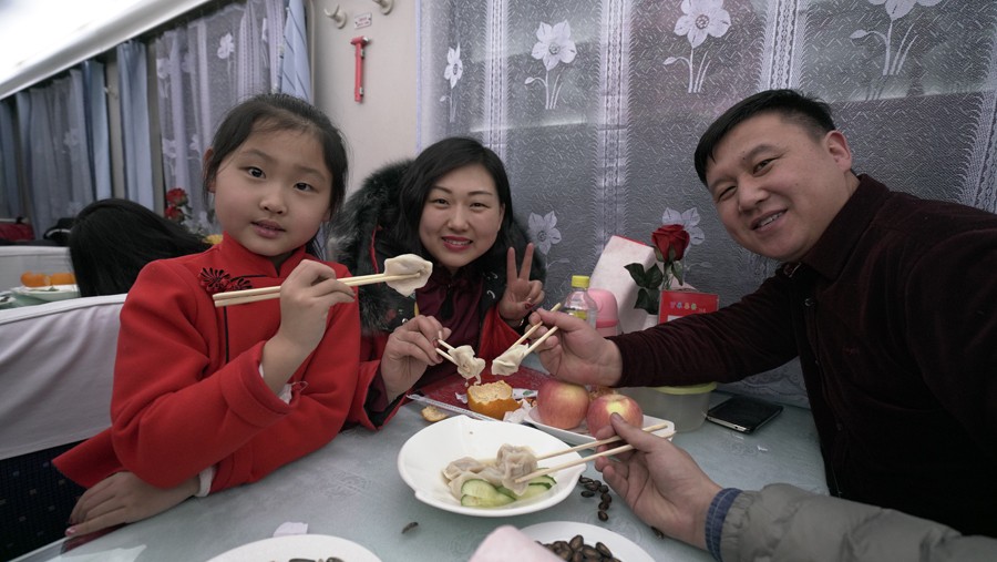 為了讓乘車(chē)旅客感受到濃濃的節(jié)日氣氛,列車(chē)餐車(chē)準(zhǔn)備了瓜子、糖、橙子、蘋(píng)果等水果零食,還特別為大家煮了暖心餃子,為歸途中的人們送上了新春祝福。列車(chē)在還特別組織開(kāi)展乘車(chē)尋找“幸運(yùn)旅客”活動(dòng),走進(jìn)車(chē)廂為 “幸運(yùn)旅客”送春聯(lián)、窗花、小狗吉祥物等,并邀請(qǐng)他們來(lái)到餐車(chē)共話(huà)年俗,講述記憶中家鄉(xiāng)的年味道和對(duì)新年的美好希冀!