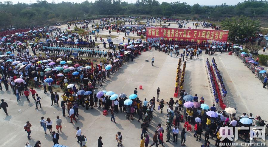 央廣網(wǎng)儋州2月17日消息(記者 吳媚苗 通訊員 馮蘭田)為在春節(jié)期間向全國(guó)人民展示海南特色文化、展現(xiàn)冬季海島風(fēng)情并深入推進(jìn)海南省“七五”普法工作,助力“法治海南”建設(shè),海南省司法廳、省普治辦聯(lián)合儋州市政府精心籌劃了2月17日(正月初二)儋州市木棠鎮(zhèn)“新春普法大集匯·萬人同唱普法歌”法治宣傳教育活動(dòng),向全國(guó)人民唱響海南“法治好聲音”。