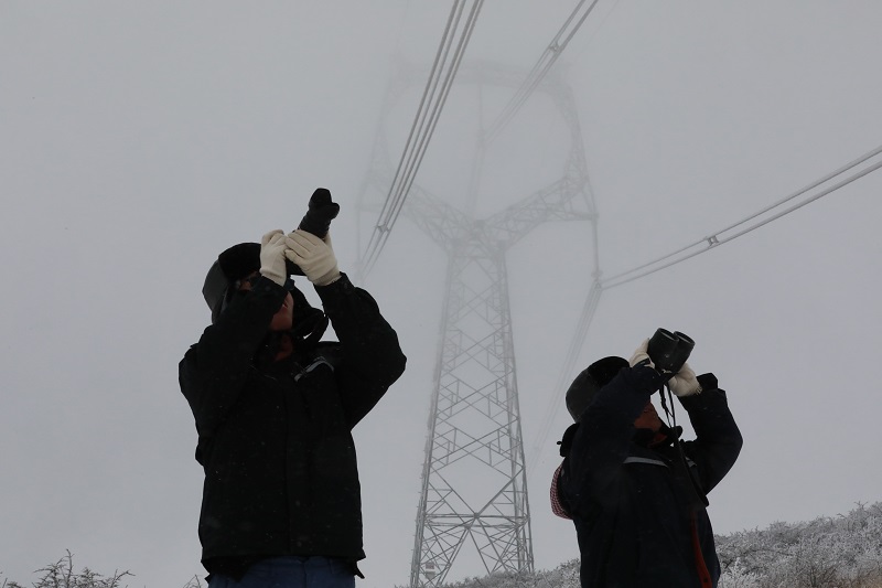 在位于海東市互助縣紅崖子溝鄉(xiāng)的330千伏郭杏Ⅰ線37-40號鐵塔覆冰現(xiàn)場,國網(wǎng)青海檢修公司運維人員正通過對一米之間的覆冰取樣,按比重測算線路全長覆冰厚度。現(xiàn)場工作負責人董雙才介紹,有近1.2公里的線路覆冰嚴重,鐵塔塔身及檔間導地線、絕緣子附著雪淞厚度20-30毫米不等。“融冰工作刻不容緩,我們迅速申請將線路由運行轉至檢修狀態(tài),并組織80余名輸電專業(yè)人員利用人力對線路進行除冰,防止在直流融冰裝置調試期間,覆冰厚度增加,加大線路斷線、倒塔等風險” ,董雙才介紹,對另外9條覆冰線路已加強人力進行重點巡查觀測。