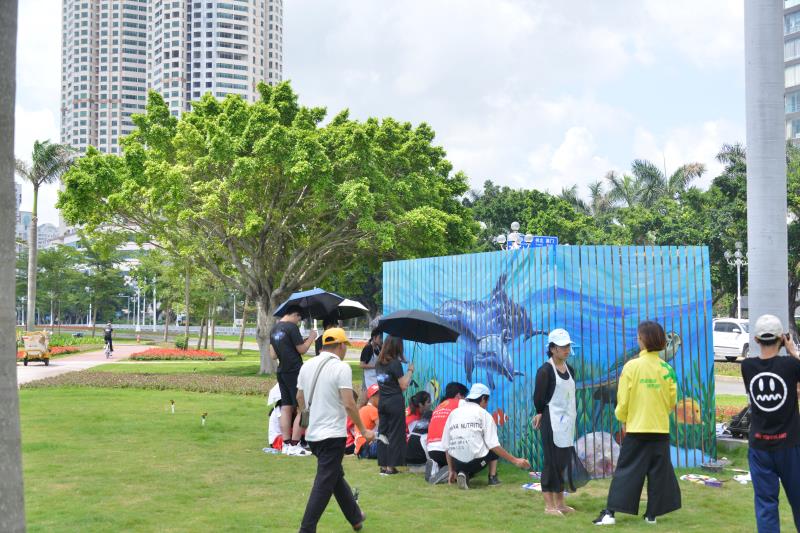 市民大學(xué)生手繪巨幅海洋風(fēng)畫(huà)卷