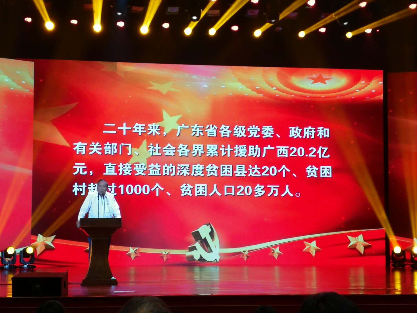 此外,二十年來,廣東省各級黨委、政府和有關(guān)部門、社會各界累計援助廣西20.2億元,直接受益的深度貧困縣達(dá)20個,貧困村超過1000個,貧困人口20多萬人。