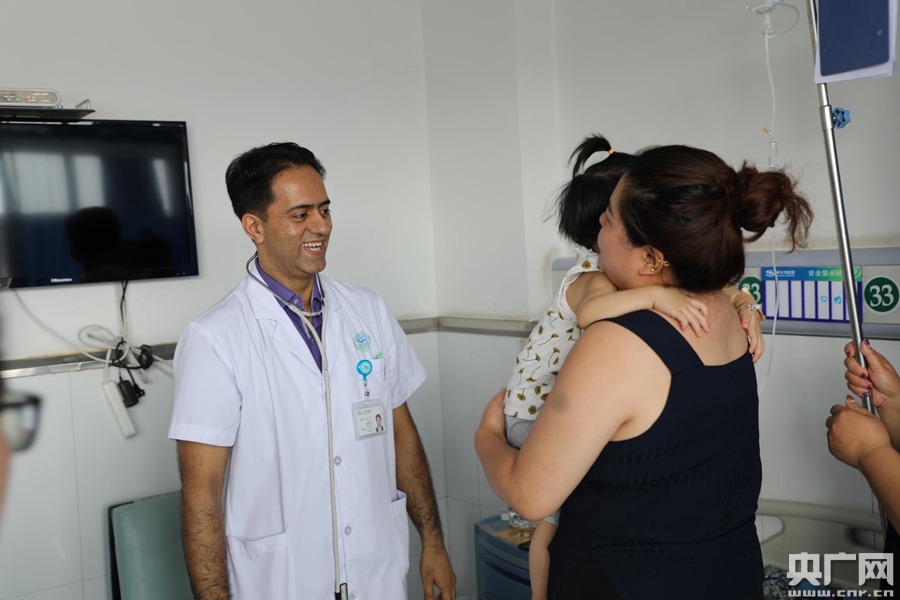 比拉爾·海帝(左)查看小患者的恢復(fù)情況(央廣網(wǎng)發(fā) 阿琳娜 攝)