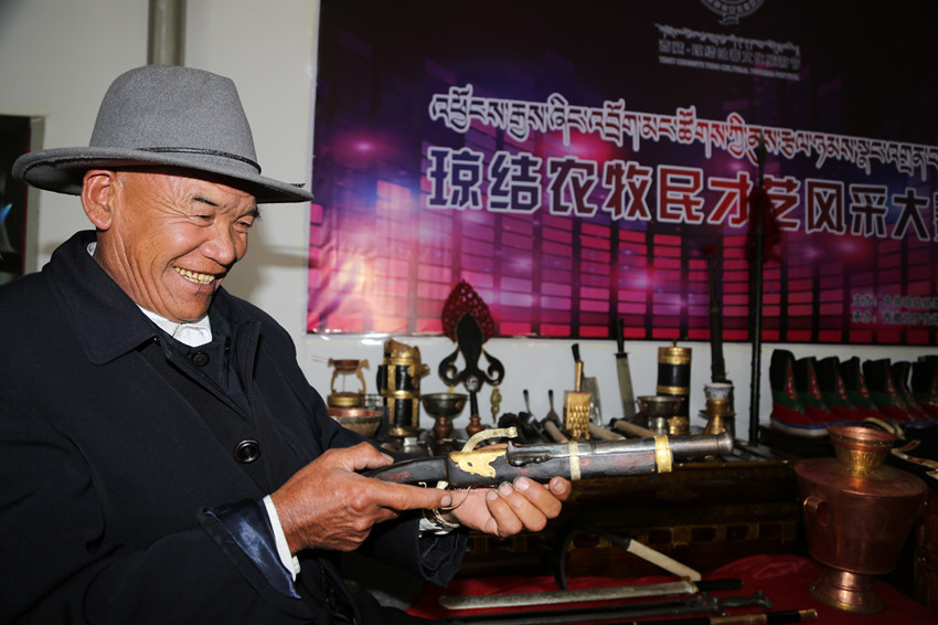 農(nóng)民選手們紛紛展示了精心準(zhǔn)備的服飾、鐵器、唐卡、酥油花、藏式家具等展品,為前來(lái)參觀的干部群眾送上了一場(chǎng)視覺(jué)盛宴。據(jù)了解,全場(chǎng)共有9個(gè)文藝類(lèi)節(jié)目、12個(gè)絕技類(lèi)作品、14個(gè)絕活類(lèi)展品參加比賽,最終7個(gè)選手成功晉級(jí)。獲獎(jiǎng)的選手將在7月29日亮相“2018西藏·瓊結(jié)第三屆吐蕃文化旅游節(jié)”閉幕式,在閉幕式上進(jìn)行統(tǒng)一頒獎(jiǎng)。