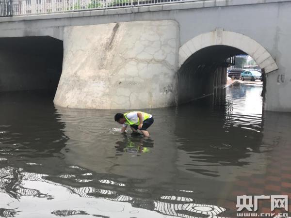 受短時強降雨影響,天津市區(qū)多處出現(xiàn)臨時積水片