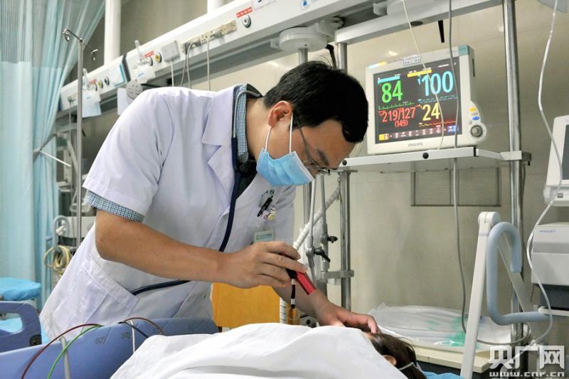 圖為羅金龍醫(yī)生正在急診科檢查昏迷患者 (央廣網(wǎng)發(fā) 通訊員李韻熙 陶繼東)