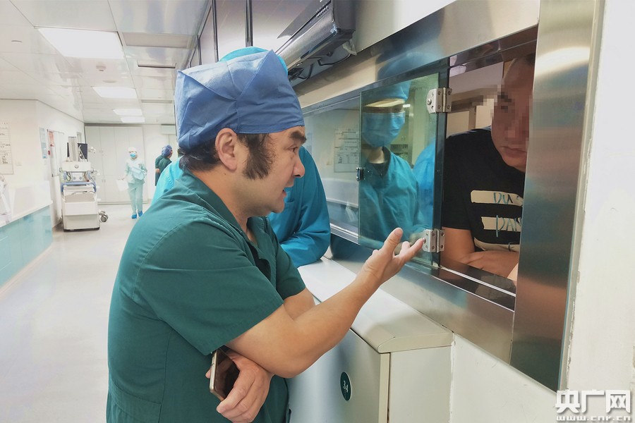 圖為余主任在與患者家屬溝通 (央廣網(wǎng)記者 黃炎秋 攝)