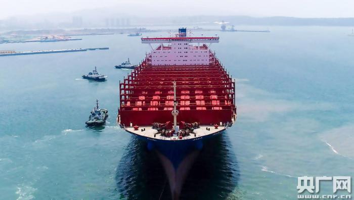 圖為世界上最大級別集裝箱船在大連交付(央廣網發(fā) 王鑫 攝)