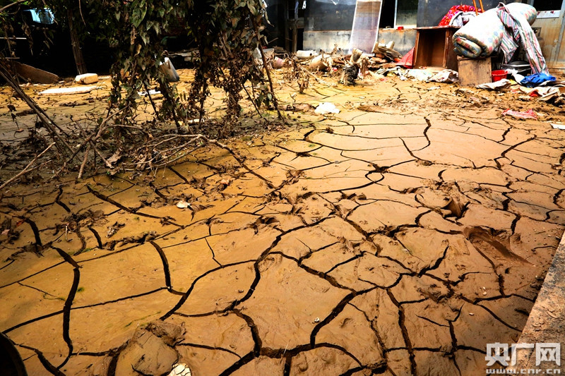 齊春富院中,洪水卷積的泥土在陽光下龜裂。(央廣網記者 唐磊 攝)