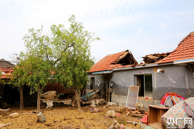 除了房子的外墻,房屋的屋頂橫梁也已經斷裂,掉進了房子內部。據齊春富的兒子齊立業(yè)介紹,這所房子平時是齊春富和他96歲的母親一塊居住,齊春富腿腳不好,耳朵聽力也有點問題,國家給他補貼,這所房子在三年前剛維修過,不過洪水來了之后還是被沖垮了。(央廣網記者 唐磊 攝)