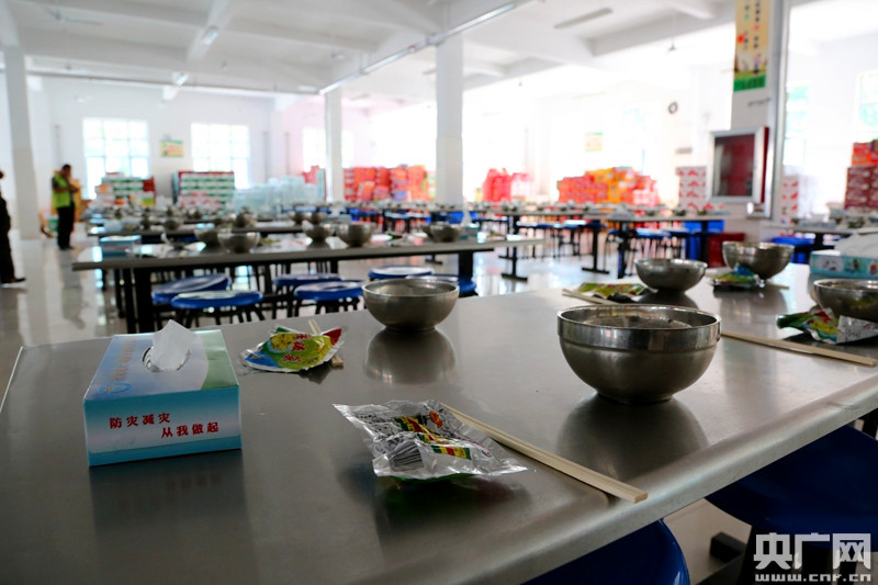 在道口小學(xué)的食堂里,幾個(gè)桌子上擺放著整整齊齊的碗筷,這些是為駐扎的消防官兵準(zhǔn)備的,高金偉告訴記者,消防官兵們自己準(zhǔn)備了方便面之類的食物,但是學(xué)校還是為他們準(zhǔn)備了這些碗筷!皩W(xué)校想讓消防官兵們吃上一口熱飯,條件不一定多好,盡我們一份心意,畢竟是人民的子弟兵!