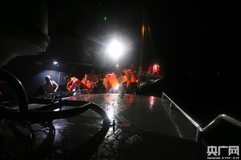 云澳中隊及漁政船值班人員對遇險船員進行救援 (央廣網發(fā) 粵漁政供圖)
