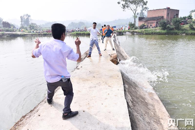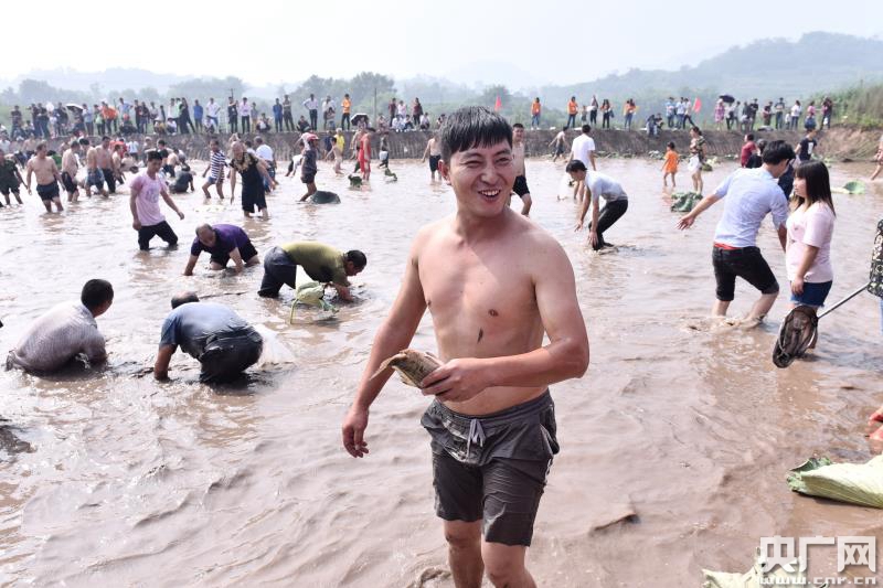 農(nóng)民朋友參加荷塘抓魚(yú)比賽(央廣網(wǎng)記者 劉湛 攝)