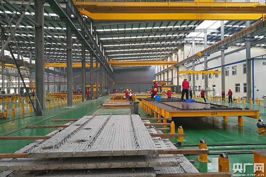 工人在車間組裝房屋構(gòu)件(央廣網(wǎng)記者 徐升 攝)