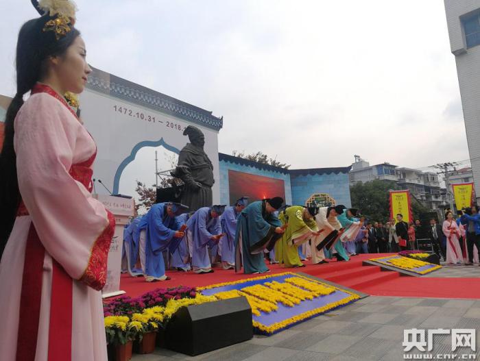 央廣網(wǎng)寧波10月31日消息(記者曹美麗 杜金明 通訊員楊明 余文楷)適逢先賢王陽明先生546周年誕辰,在陽明先生故鄉(xiāng)——寧波余姚,迎來了一場(chǎng)文化盛事。今天(31日)上午,以“心學(xué)·改革·擔(dān)當(dāng)”為主題的2018寧波(余姚)陽明文化周開幕式暨禮賢儀典活動(dòng)在寧波余姚王陽明故居廣場(chǎng)舉行,深切紀(jì)念這位明代心學(xué)大師。