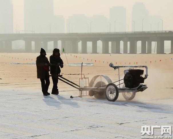 央廣網(wǎng)哈爾濱12月12日消息(記者毛更偉 楊沼畔 喬仁慧 遲嵩 馮志遠(yuǎn) 見習(xí)記者唐國榮 瞿文斌)歲末年關(guān),冰雪旅游的市場拉開大幕。目前,黑龍江省已經(jīng)開始了取冰制冰雕的準(zhǔn)備工作。松花江上取冰正當(dāng)時(shí),取冰人正在為以冰雪大世界為代表的黑龍江各大冰雪景點(diǎn)輸送冰雪原料。