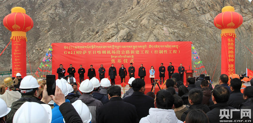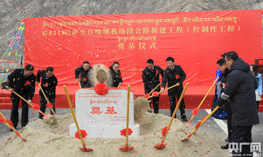 G4218拉薩至日喀則機(jī)場段公路新建工程(控制性工程)開工(央廣網(wǎng)記者 普布次仁 攝)