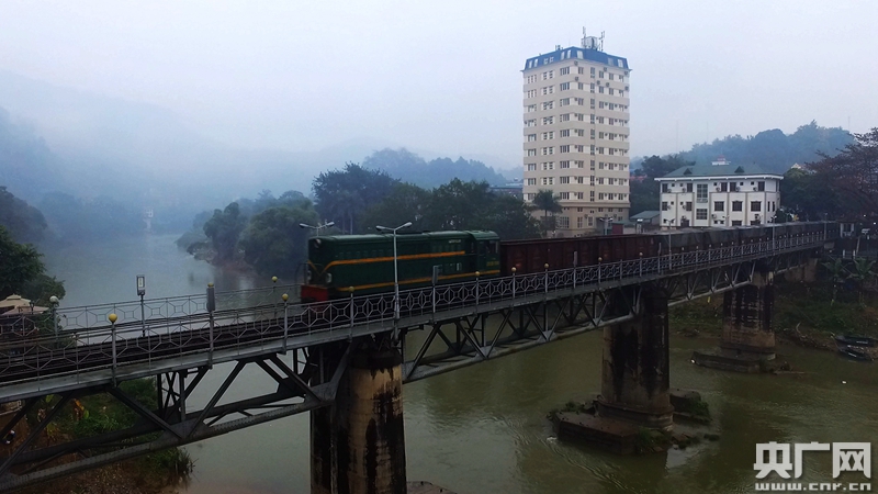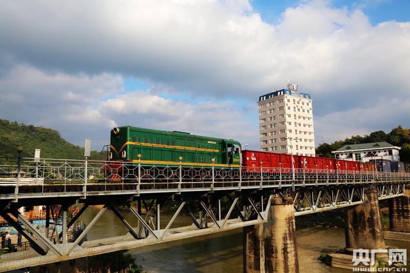 中亞班列貨物列車(chē)通過(guò)位于云南省河口縣的中越鐵路大橋。央廣網(wǎng)發(fā) 劉昊亮攝