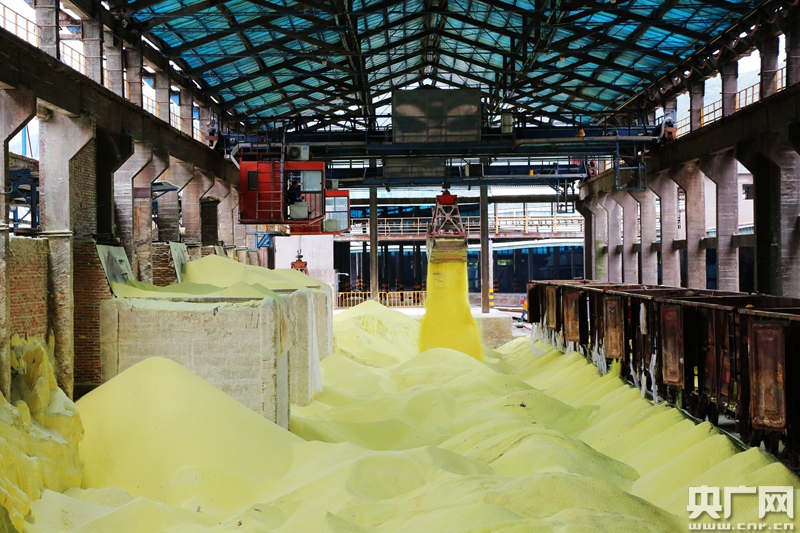越南進(jìn)口硫磺通過(guò)中亞班列運(yùn)抵云天化紅磷分公司專(zhuān)用線(xiàn)卸車(chē)。央廣網(wǎng)發(fā) 劉昊亮攝