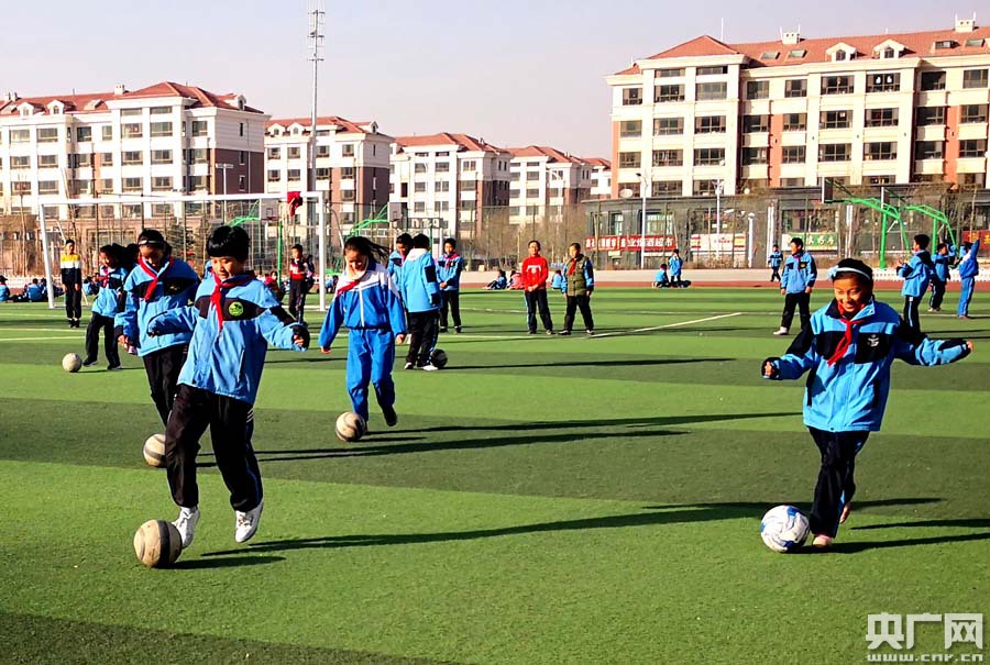 海東市高鐵新區(qū)學校的學生正在上體育課(央廣網(wǎng)記者葛修遠攝)