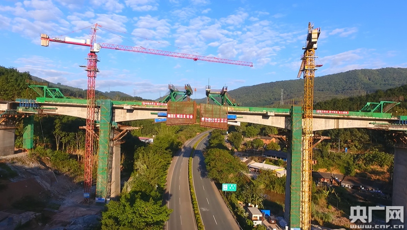 玉磨鐵路“一橋跨兩路”的關(guān)坪雙線大橋合龍。央廣網(wǎng)發(fā) 沈濤攝影