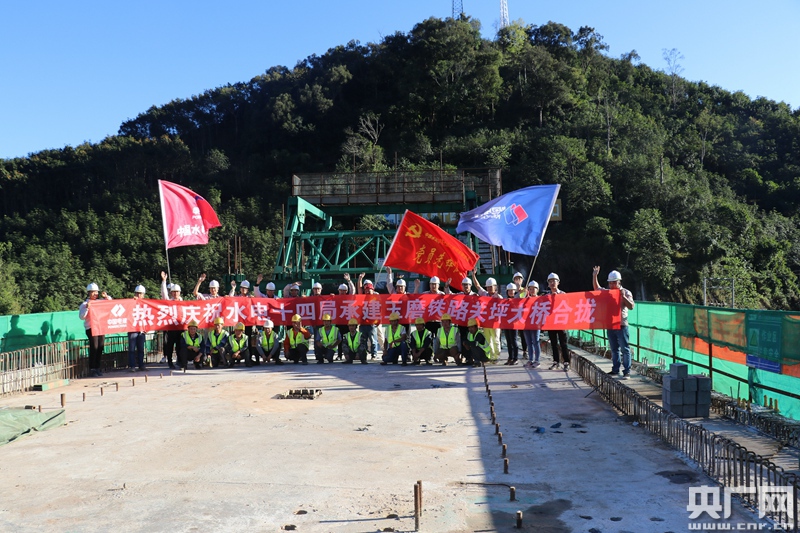 玉磨鐵路關(guān)坪大橋連續(xù)梁合攏 央廣網(wǎng)發(fā) 沈濤攝影
