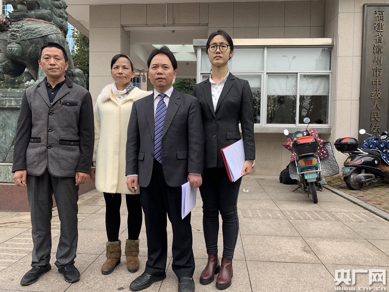 宣判結束后劉大蔚父母與辯護律師徐昕、肖之娥合影 央廣網記者 萬存靈攝