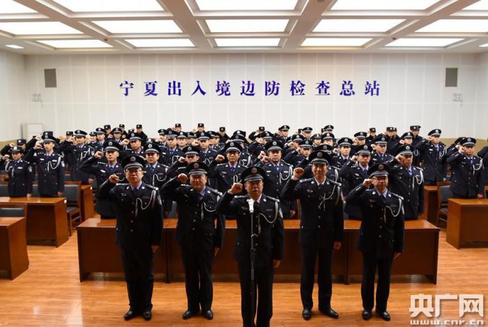 央廣網(wǎng)銀川1月2日消息(記者許新霞 通訊員劉玉飛)2019年1月1日下午,寧夏出入境邊防檢查總站隆重舉行集體換裝儀式,標志著現(xiàn)役官兵集體轉(zhuǎn)改為人民警察、中華人民共和國寧夏出入境邊防檢查總站正式組建運行?傉救w民警共同見證了這一莊嚴隆重的歷史性時刻。