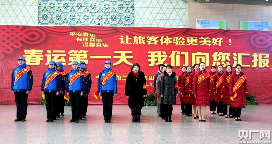 春運(yùn)志愿者授旗(央廣網(wǎng)發(fā) 閆軍拍攝)