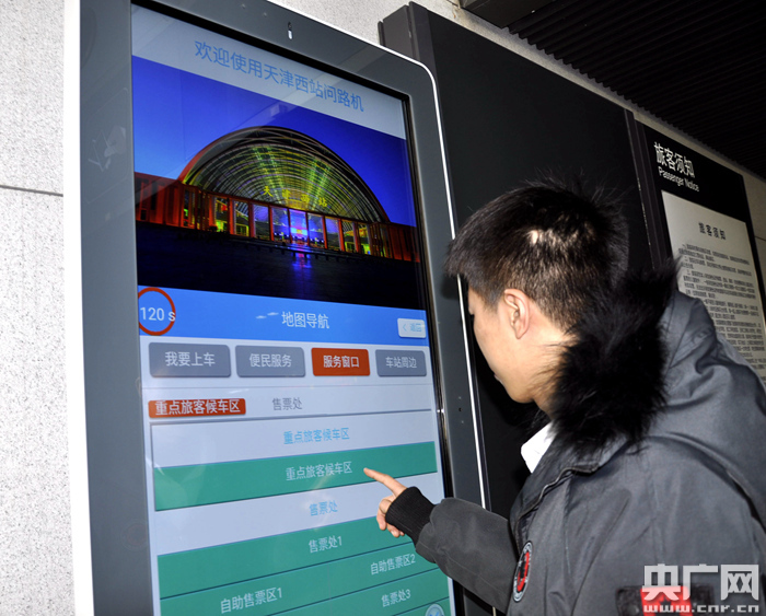 天津西站增設(shè)問路機(jī),為旅客提供進(jìn)站乘車服務(wù)(央廣網(wǎng)發(fā) 天津西站提供)