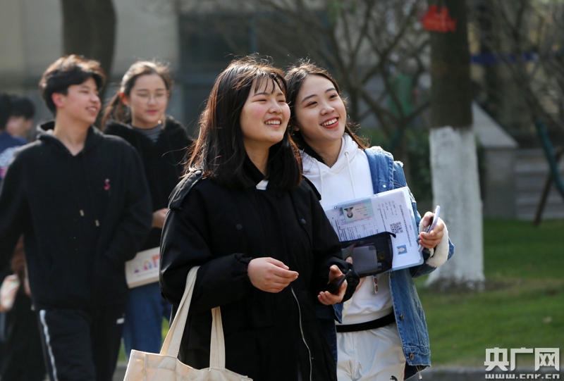 1月23日,兩位考生信心滿滿準(zhǔn)備進(jìn)入考場。(央廣網(wǎng)記者 魏煒 攝)