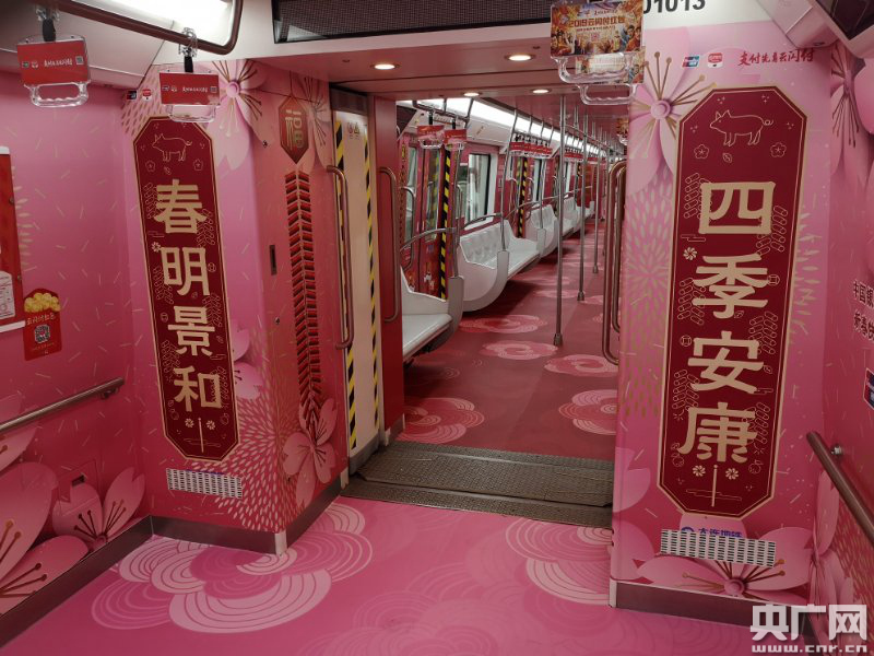 大連地鐵上線“2019金豬納!敝黝}車廂(央廣網發(fā) 宮文 攝)