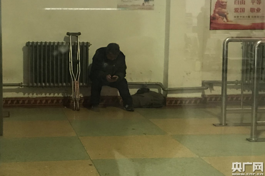 老人腿腳不便,很少外出。兒子給父親訂好了火車票,叮囑父親出門一定要把身份證帶上,取票必須要用身份證。從岷縣到中寧沒有直達(dá)的火車,要乘坐哈達(dá)鋪到銀川的K9883次列車,再換乘去中寧。常曉鐘的兒子常年在青銅峽、中寧兩地跑業(yè)務(wù),和父親說好在青銅峽下車,坐順路車回去。2月2日早晨9點多,常曉鐘就坐上了火車,聽兒子說,天黑前就能到,常曉鐘上車后終于放下心來,開心的想著馬上要見到兩個孫兒了,結(jié)果一不小心就睡著了。等醒來時,手機也早已沒電了,一看窗外,天已全黑,常曉鐘一問身邊的旅客才知馬上快到青銅峽火車站。青銅峽一停車,老人就和其他旅客一起下車出了站,手機沒電,兒子也聯(lián)系不上,外邊很冷,老人又舍不得住賓館,于是就決定在售票廳過一夜,明天再想辦法回兒子家。