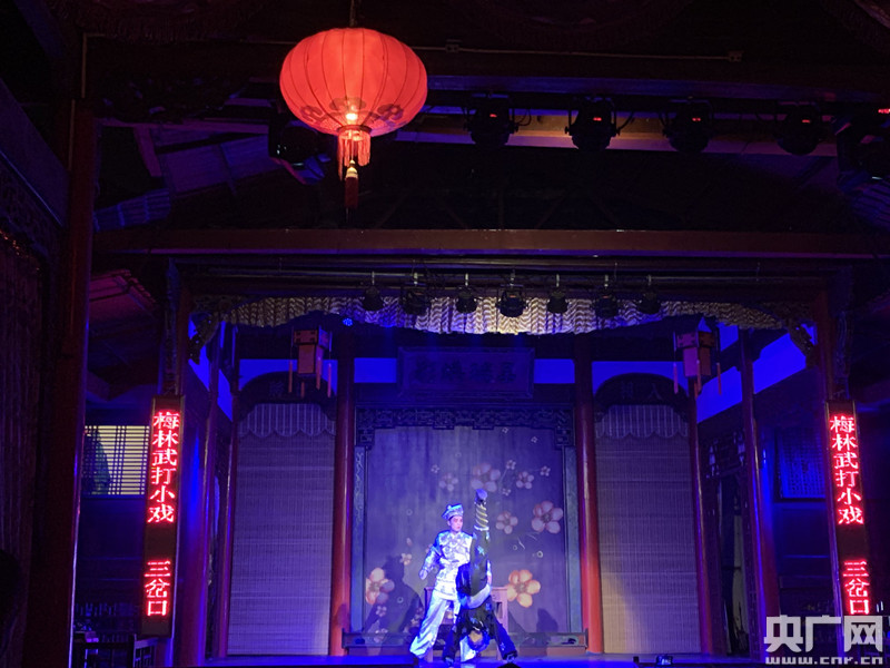 央廣網(wǎng)三明2月17日消息(記者 萬存靈)悠揚的笛聲配上清脆的琵琶聲,干練的武打招式配上如癡如醉的唱腔,正月初十晚上,在福建省三明市泰寧縣尚書第古宅里,泰寧縣梅林戲藝術傳承保護中心的演員們正在給觀眾奉上一場精彩的梅林戲表演。