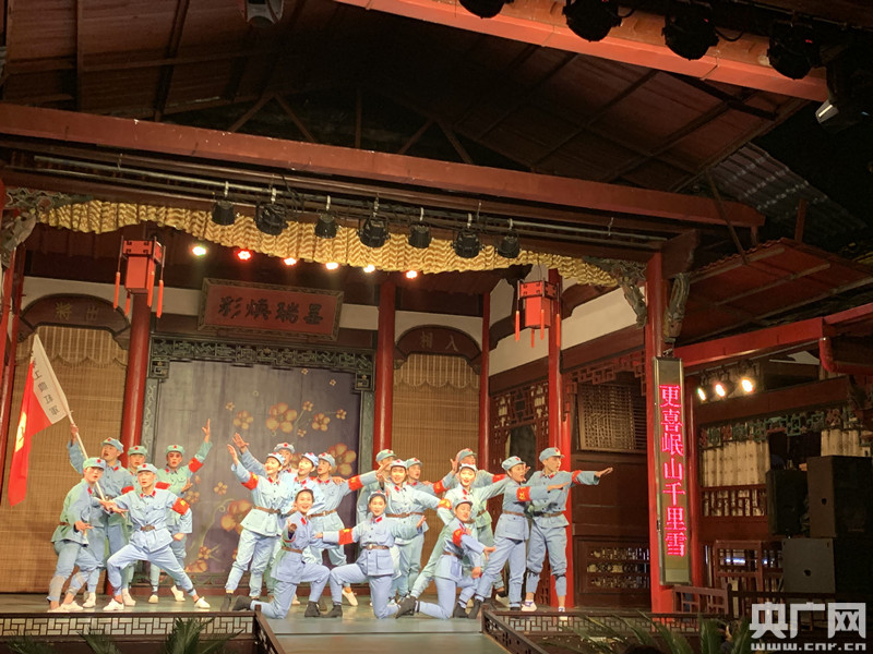 梅林戲表演唱《紅軍不怕遠征難》 記者萬存靈攝
