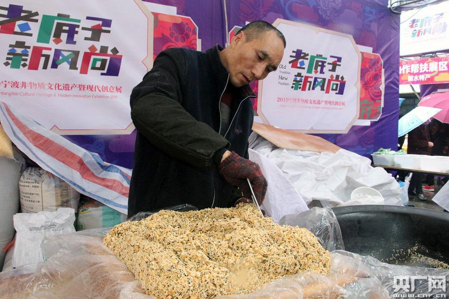 “來看會‘跳舞的漿板’嘍!等下我煮給你們吃,都是免費的哦!”1號展位的姚春飛今年53歲,從婆婆那兒繼承原汁原味的純手工酒釀制作工藝,40年來不斷研究開發(fā)酒釀新產(chǎn)品,是寧波酒釀非物質(zhì)文化遺產(chǎn)的傳承人。