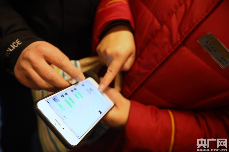 王宏勛、龔吉慧在車上給兒子發(fā)微信。(央廣網(wǎng)發(fā) 通訊員馮暢 攝)