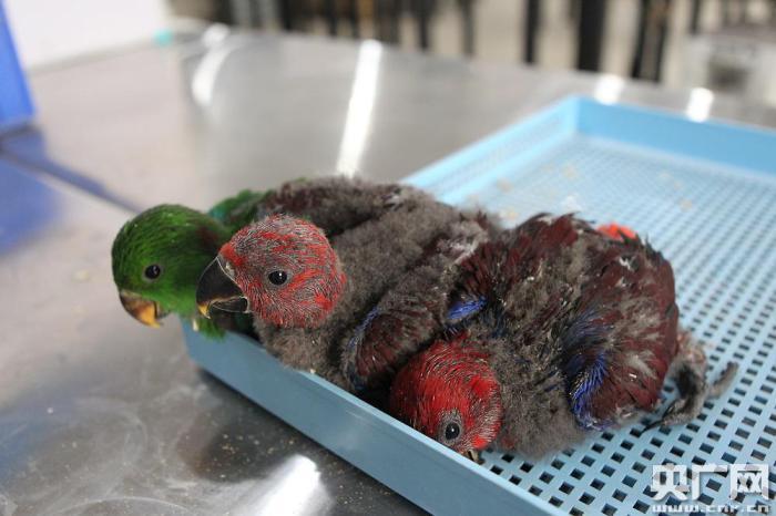 三只孵化出的折衷鸚鵡(央廣網(wǎng)發(fā) 李濤濤 攝)