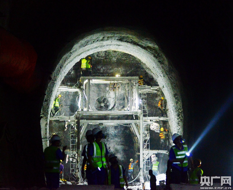 施工人員在安裝了有害氣體自動監(jiān)測報警裝置的洞內(nèi)作業(yè)(央廣網(wǎng)發(fā) 張偉明 攝)