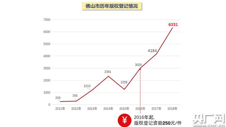 2011-2018年,佛山市一般作品版權(quán)登記總量達(dá)18900件(央廣網(wǎng)發(fā) 通訊員供圖)