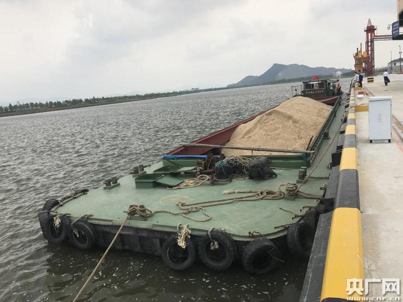 ?吭诖a頭的運(yùn)沙船(央廣網(wǎng)發(fā) 宋兵 攝)