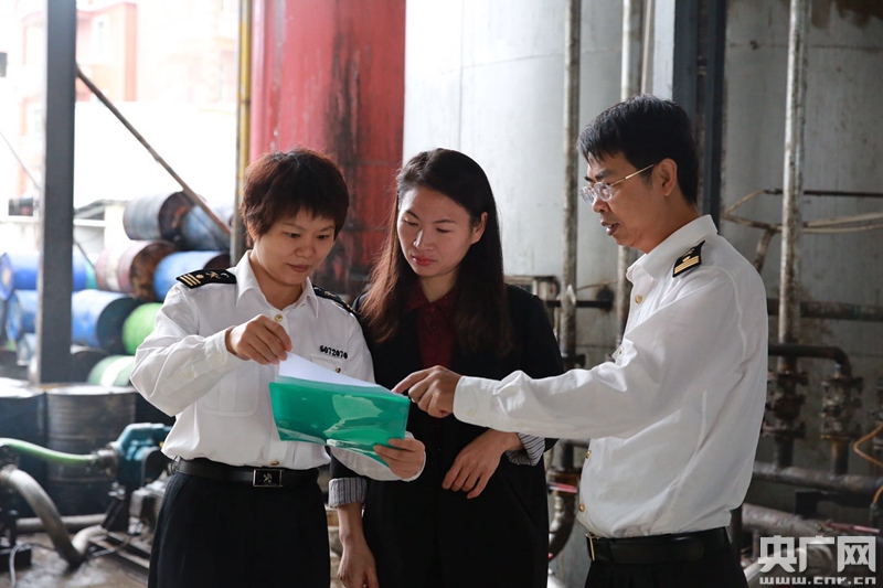 關員核對企業(yè)自檢報告 周夢瑩 攝
