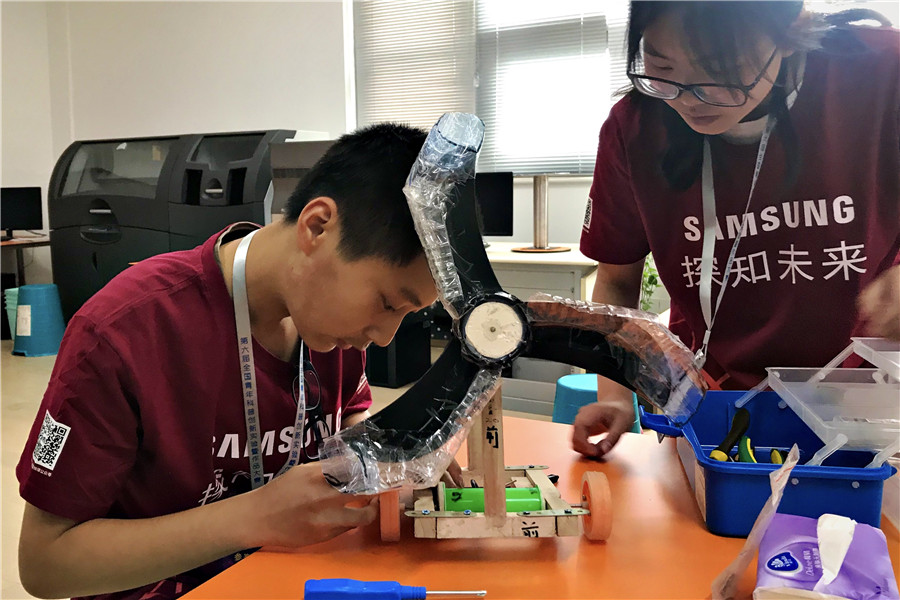 “風(fēng)能是地球表面空氣流動所產(chǎn)生的動能,我們今天要做的就是逆風(fēng)行駛的小車。這輛小車從設(shè)計、制作到組裝,都是我們團隊一起完成的,主要是利用風(fēng)能實現(xiàn)逆風(fēng)行駛!痹趶(fù)賽現(xiàn)場,一隊參賽選手展示了他們設(shè)計制作的逆風(fēng)小車……在5月11日至12日的復(fù)賽現(xiàn)場,從初賽中脫穎而出的成都七中高新校區(qū)、閬中中學(xué)、西安高新第二初級中學(xué)等2 9支中學(xué)隊伍,以及西南民族大學(xué)、四川農(nóng)業(yè)大學(xué)、成都理工大學(xué)等20支大學(xué)生隊伍進入到了激烈的復(fù)賽比拼中。