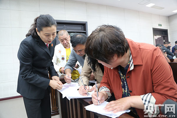 被害人在簽署退賠文件(央廣網(wǎng)發(fā) 通訊員李丹 攝)