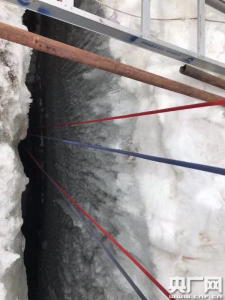 狹窄的冰縫給救援帶來了不小的困難(央廣網發(fā) 甘肅藍天救援隊供圖)