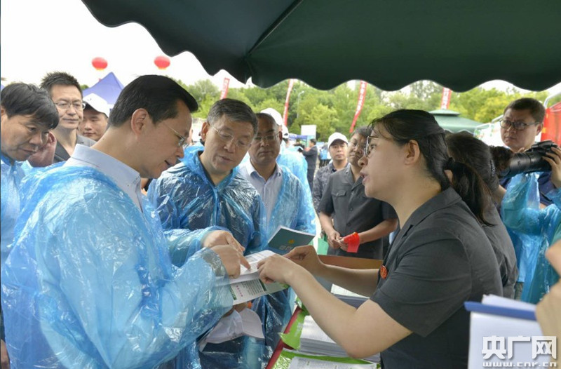 山西省生態(tài)環(huán)境廳廳長潘賢掌為“建設美麗山西主題采訪團”授旗(央廣網發(fā) 主辦方供圖)