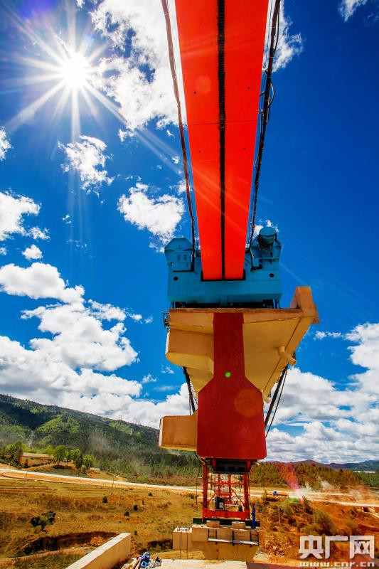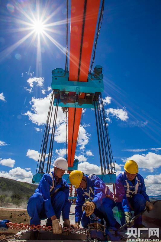 6月11日上午,云南麗江至香格里拉鐵路小中甸2號大橋開始T梁架設(shè),這也是麗香鐵路第一片T梁架設(shè),標(biāo)志著麗香鐵路建設(shè)取得重要進(jìn)展。(央廣網(wǎng)發(fā) 陳暢 攝)