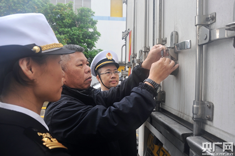 穗東海關監(jiān)管出口蔬菜裝車。(央廣網發(fā) 陳志軍攝)
