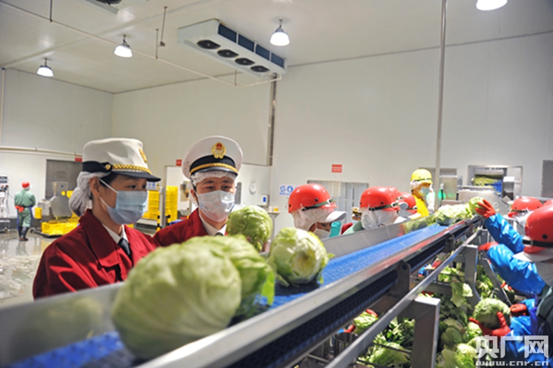 穗東海關關員察看出口蔬菜。(央廣網發(fā) 陳志軍攝)
